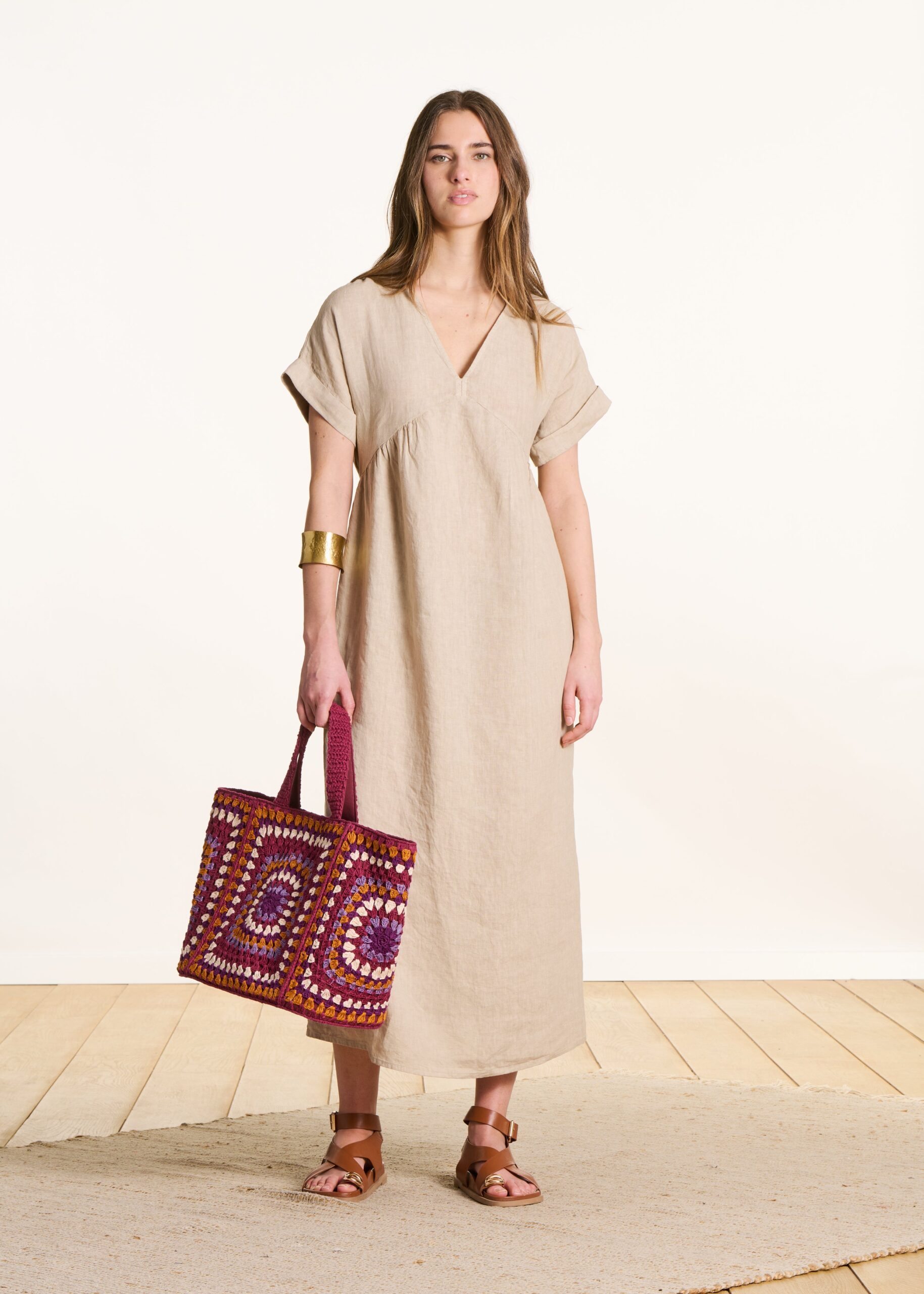 La Fee Maraboutee — Robe longue ample en lin beige manches courtes